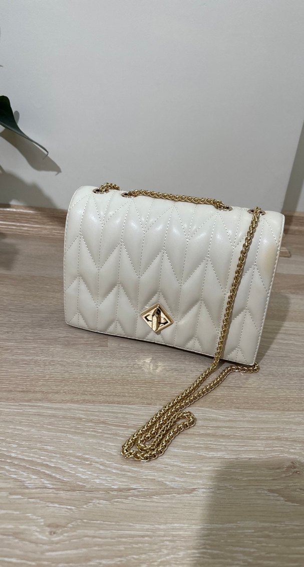 Marjin marka, Zincir detaylı, bej deri çanta, modern klasik tarzda şıklık sunar.