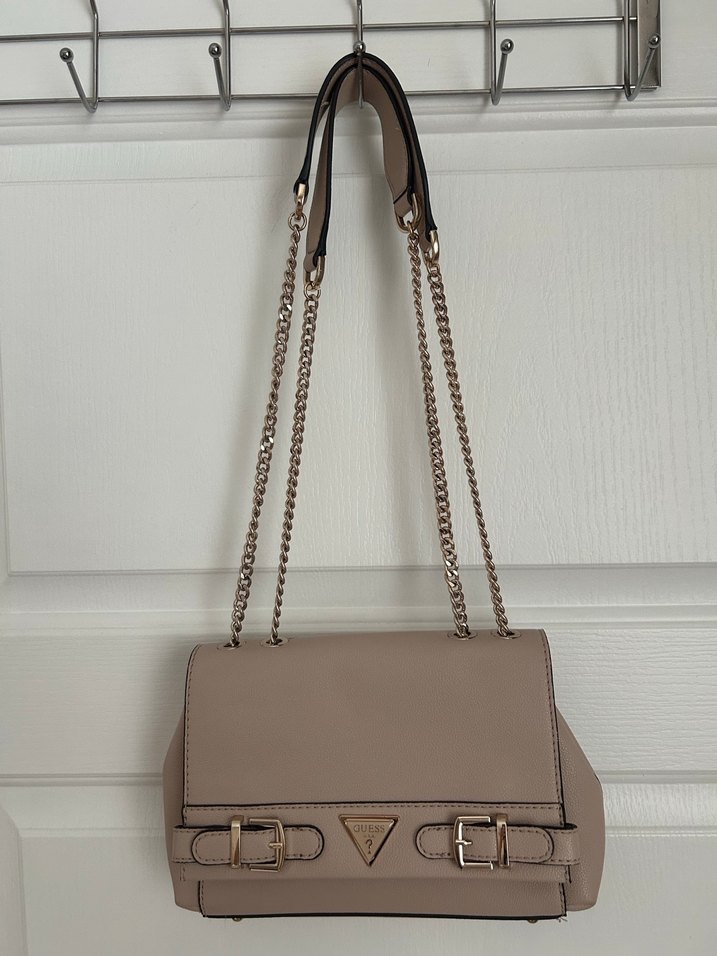 Minimalist tarzda, zincir detaylı pudra deri kadın çanta. Günlük kullanıma uygun, sade ve şık tasarıma sahip. Orjinal ürün ölçüleri 25*15*5 cm