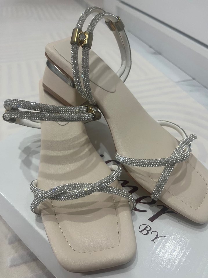 Zincir Detaylı Bej kalın Topuklu Kadın Ayakkabı