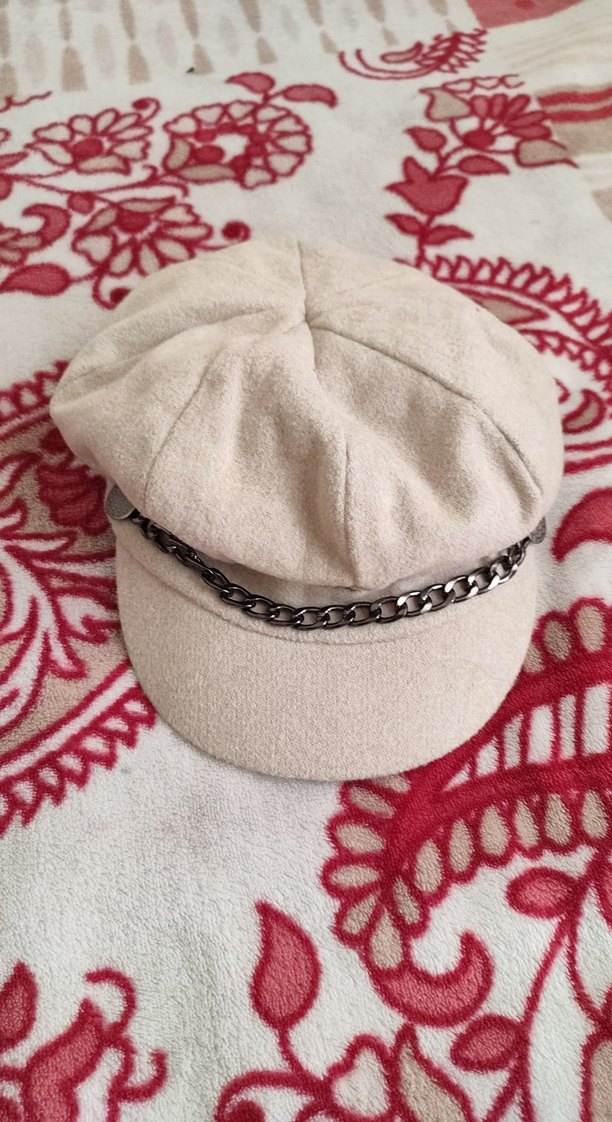 Zincir Detaylı Bej kadın şapka