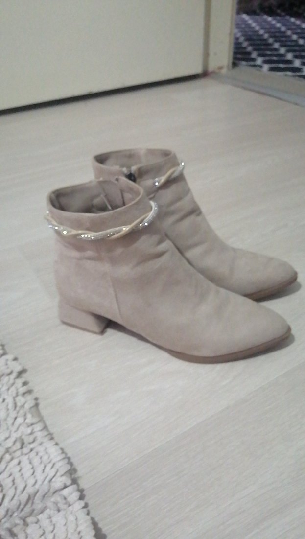 Zincir Detaylı Bej Süet Kadın Bot