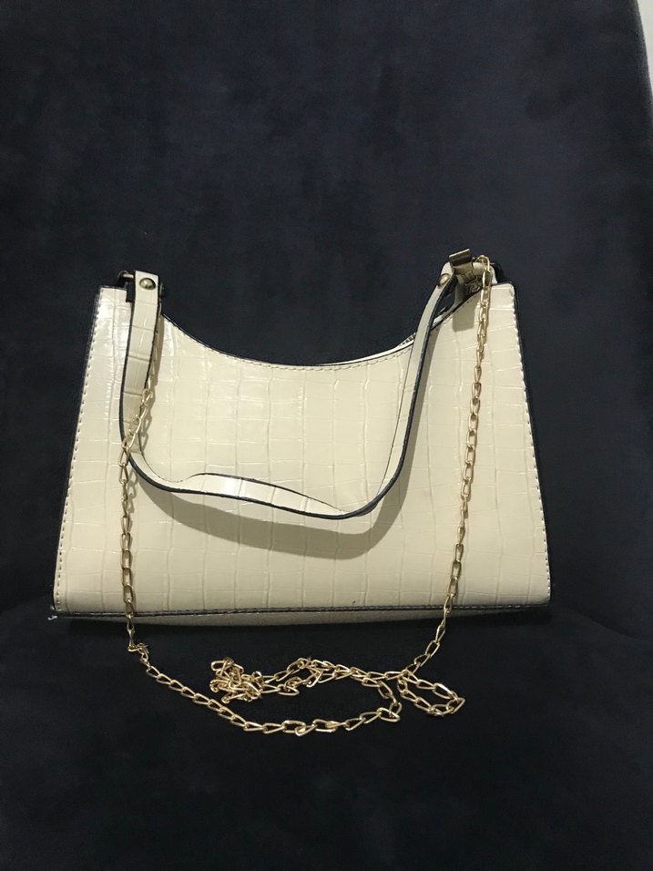 Bej çanta, zincir detaylarıyla modern klasik tarzını yansıtıyor. Günlük kullanıma uygun. Hiç kullanılmadı ihtiyaç fazlası zincir detayı çıkıyor