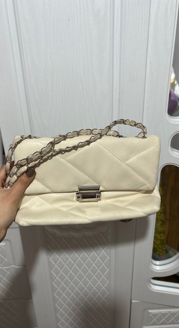Zincir Detaylı Beyaz Deri Kadın Çanta