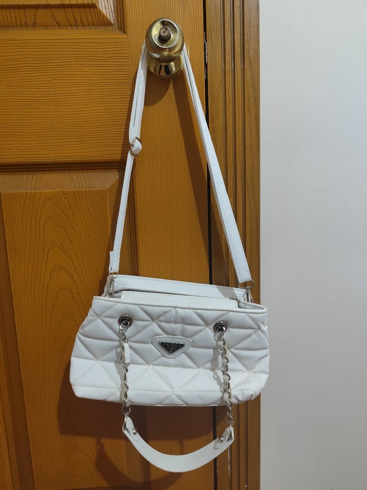 Zincir Detaylı Beyaz Deri Kadın Çanta