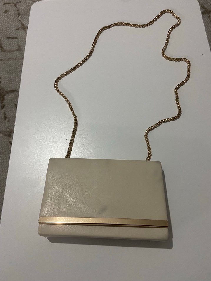 Zincir detaylı, beyaz deri kadın çanta, modern klasik tasarıma sahip, günlük kullanıma uygun şık bir modeldir.