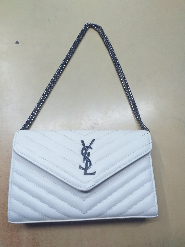 Zincir Detaylı Beyaz Deri Kadın Çanta
