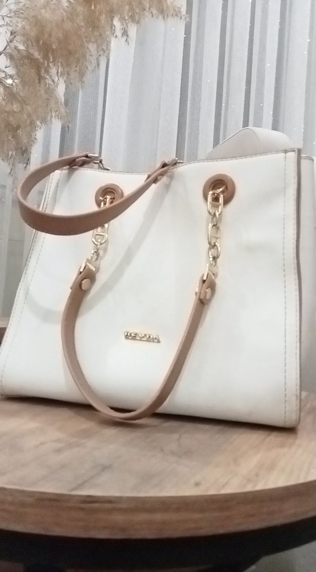 Zincir detaylı, pastel tonlu beyaz deri kadın çanta, modern klasik ve Paris tarzını yansıtır. Günlük kullanım için uygundur.