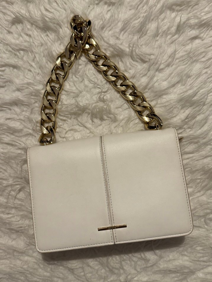 Zincir Detaylı Beyaz Deri Kadın Çanta