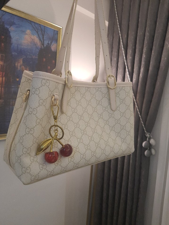 Beyaz deri, baskılı desenli kadın çantası, zincir detayıyla modern klasik ve Paris şıklığını bir araya getiriyor.