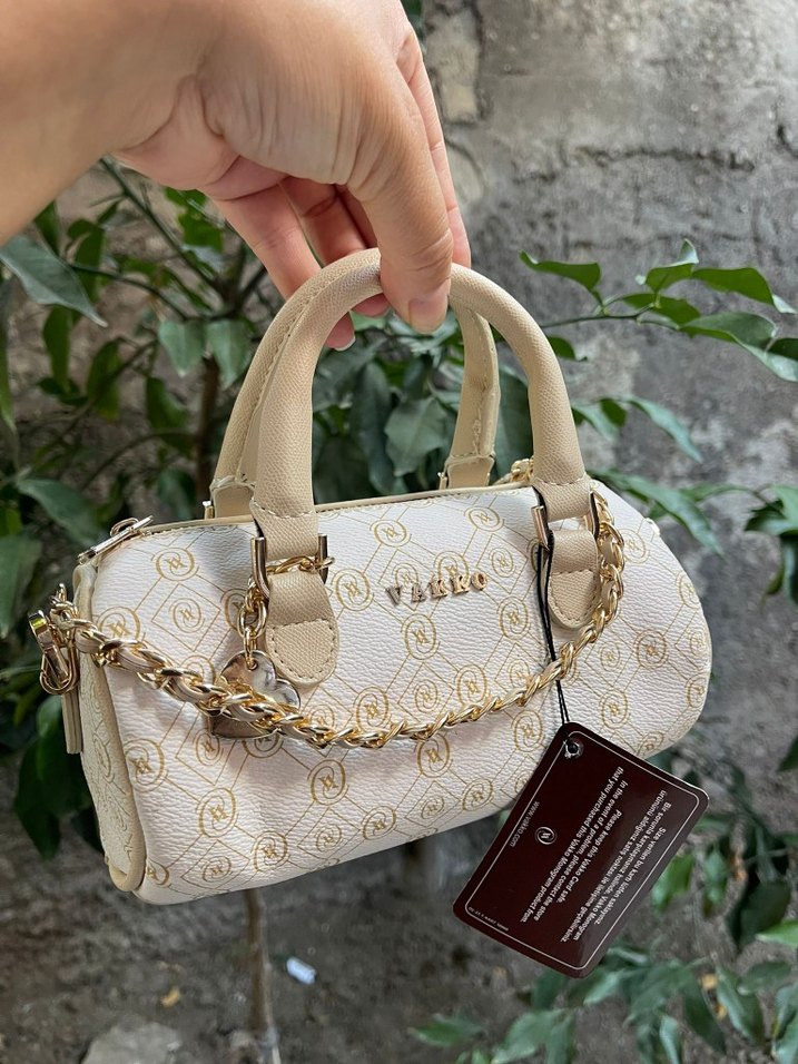 Beyaz deri kadın çanta, pastel baskılı desen ve zincir detaylarıyla klasik zarafet ve Paris sokak stilini günlük kullanıma sunar.
