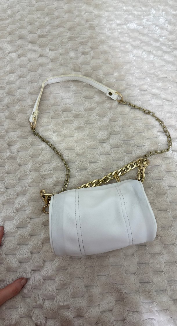 Zincir Detaylı Beyaz Deri Kadın Çanta