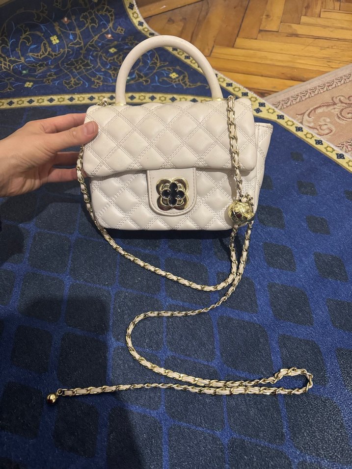 Zincir Detaylı Beyaz Deri Kadın Çanta
