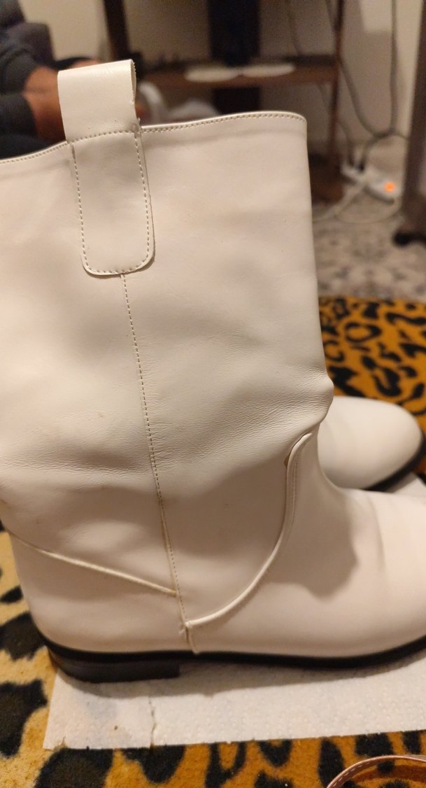 Zincir detaylı beyaz deri kadın botlar, dolgu topuklu. Desensiz, sokak stili ve günlük kullanım için uygun, şık bir tercih. 37 37,5 olur yeni çok az kullanıldı