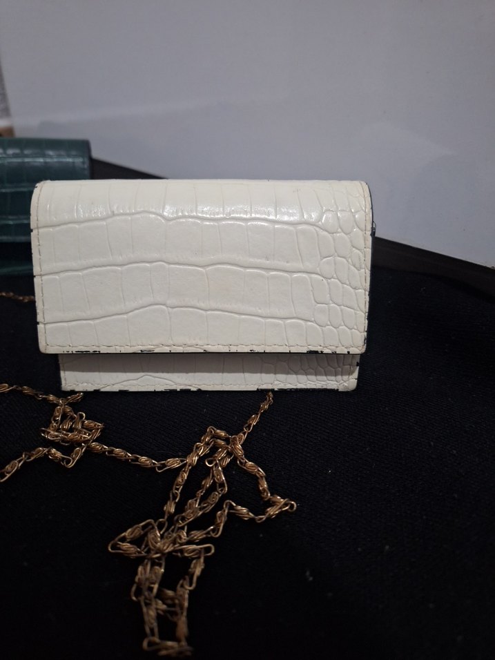 Zincir Detaylı Beyaz Deri Yılan Desenli Çanta