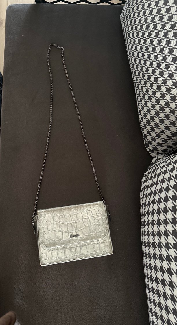 Zincir Detaylı Beyaz Deri Yılan Desenli Çanta