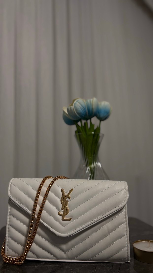Zincir Detaylı Beyaz Deri YSL Çanta