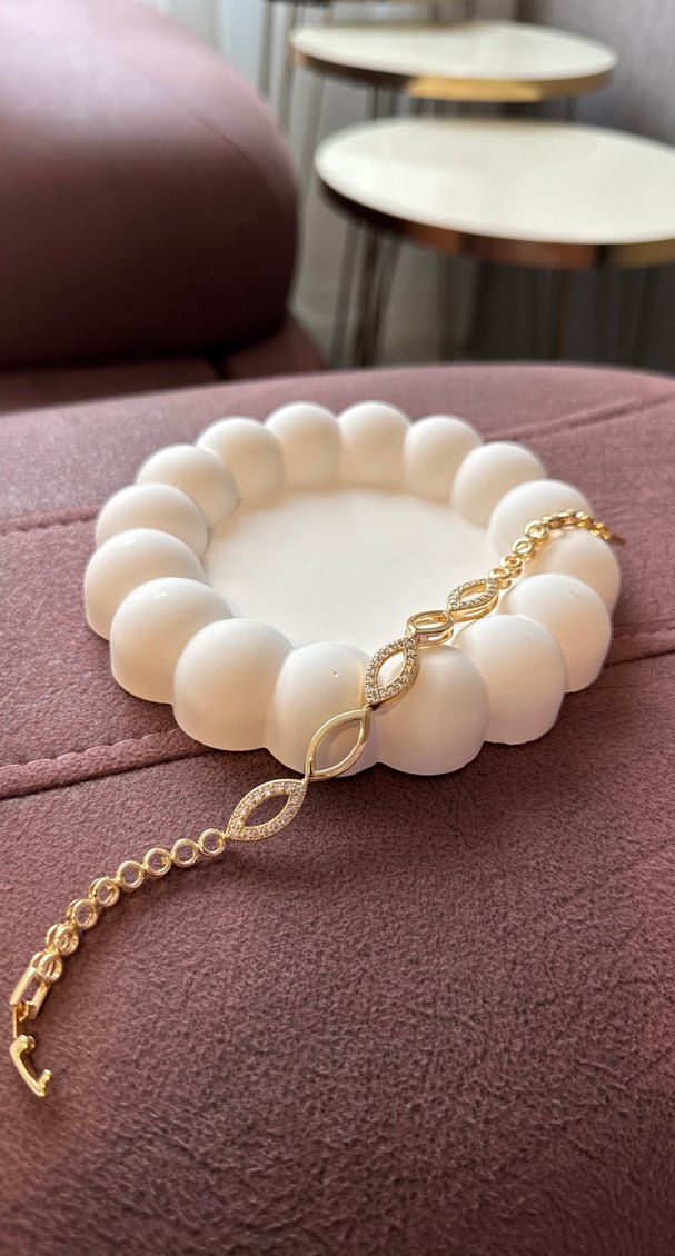 Bu kadın bilekliği beyaz boncuklu tasarımı ve zarif altın zincir detayıyla minimalist ve modern klasik stilleri birleştirir. Düğün ve şık etkinlikler için uygundur.