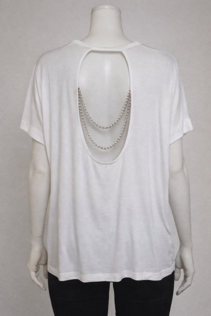 Zincir detaylı beyaz kadın body chain, arka tarafta zincir aksesuarıyla gündelik ve rahat sokak stili için uygundur. ✨ s beden m ve l bedene uygun