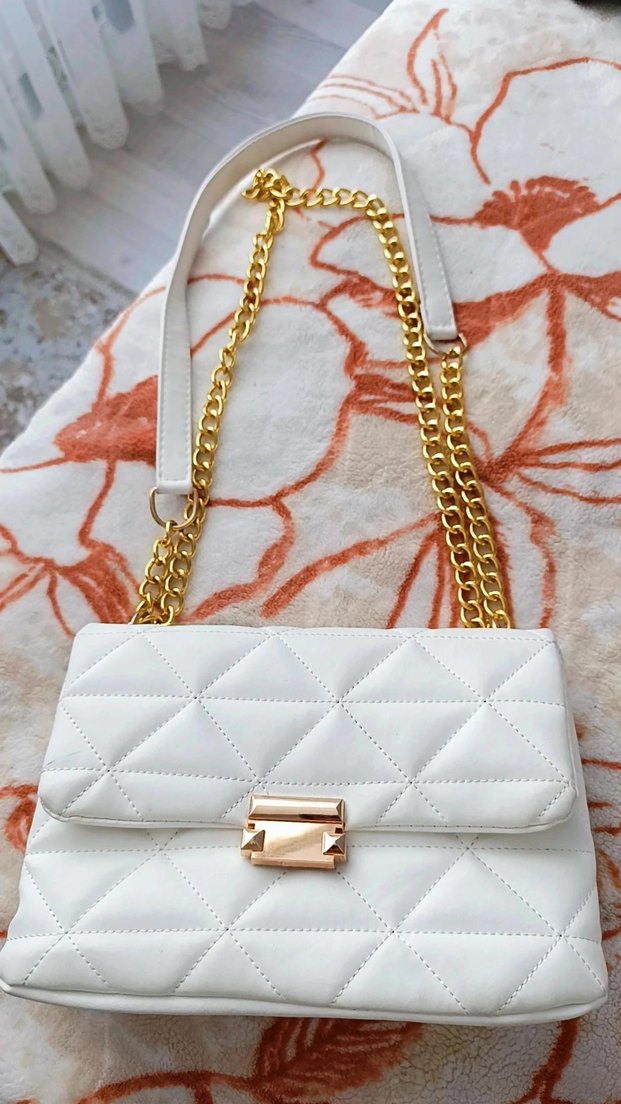 Zincir Detaylı Beyaz Kadın Çanta