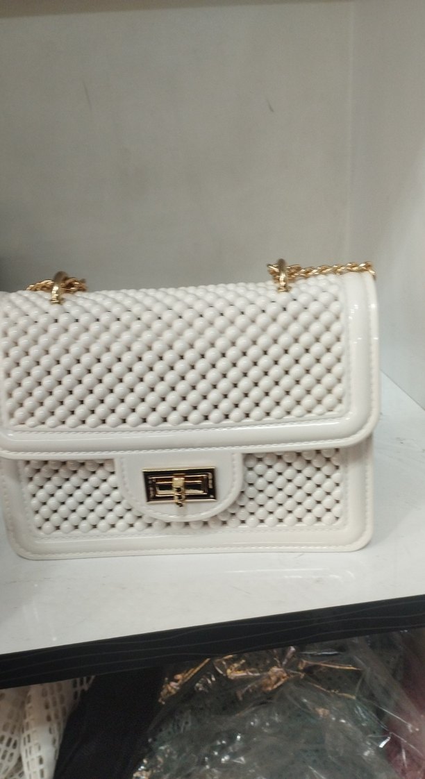Zincir Detaylı Beyaz Kadın silikon Çanta