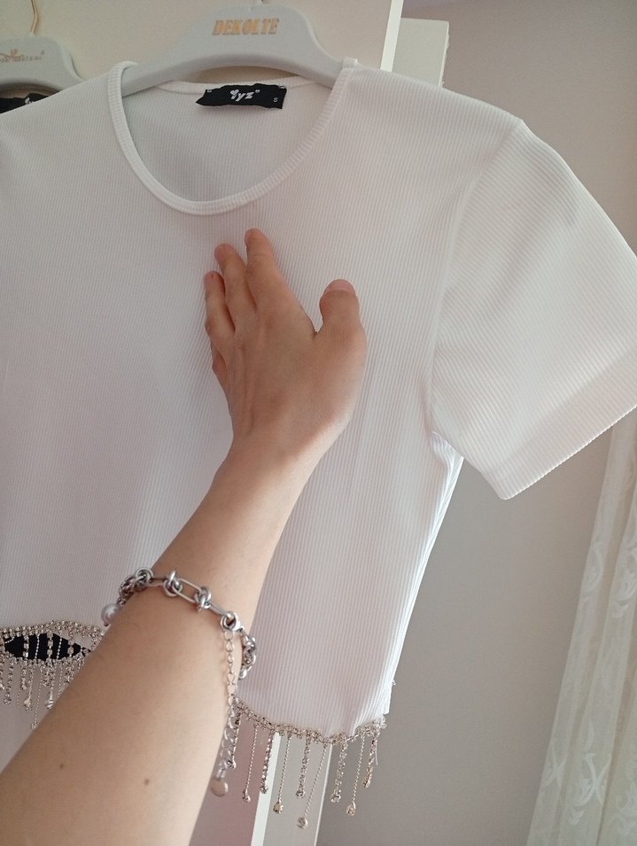 bir kere giyildi sadece Siyah rengi de mevcut Günlük kullanıma uygun, zincir detaylı ve beyaz tonlarda şık bir kadın el zinciridir. ✨