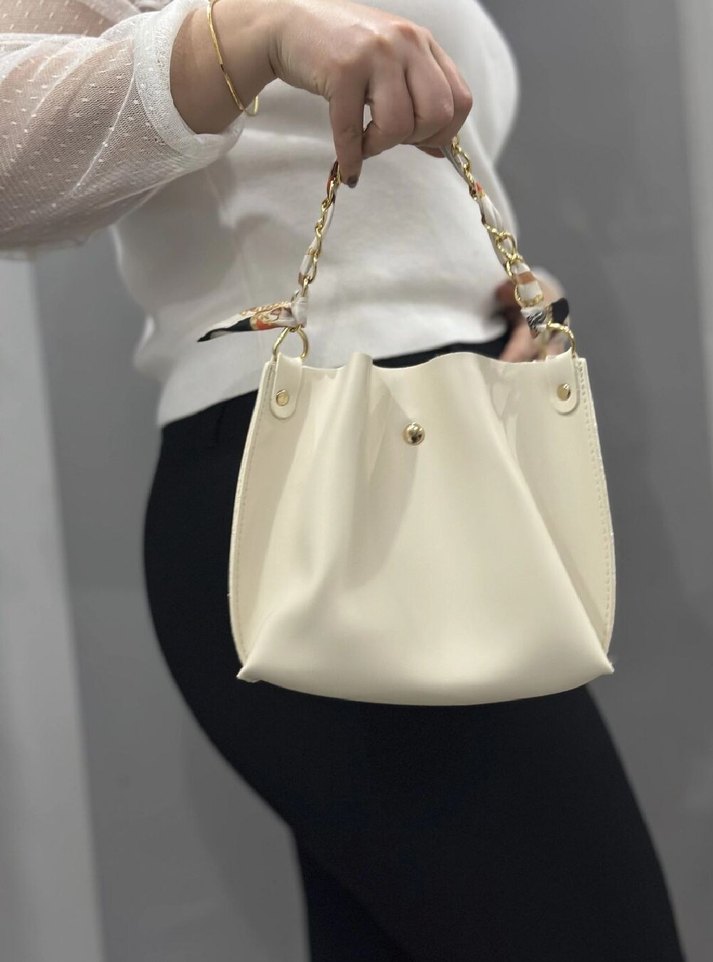 Zincir Detaylı Beyaz Kadın Omuz Çantası
