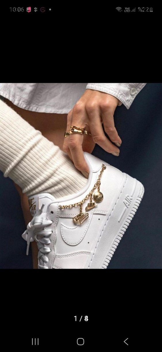 Düğünler için yüksek topuklu, zincir detaylı beyaz kadın spor ayakkabısı. Seramik malzemeden yapılmış, minimal desenli ve açık renkte.Nıke zincirli model kafım ayakkabı