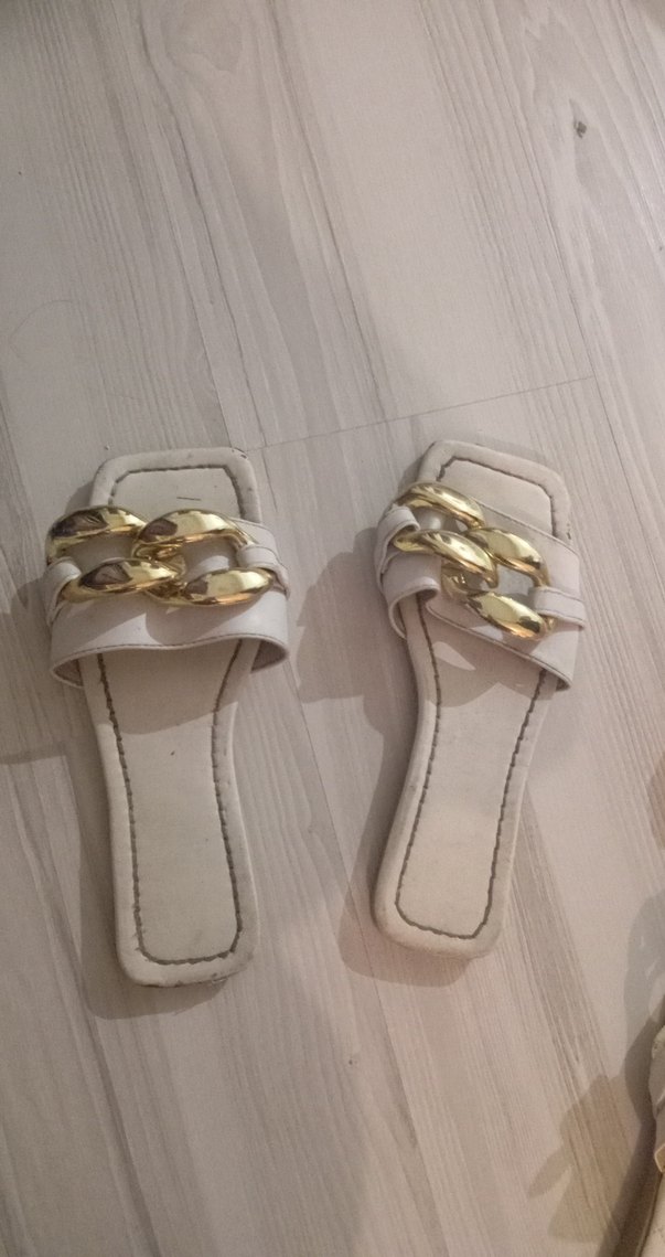 Zincir Detaylı Beyaz Kadın Terlik