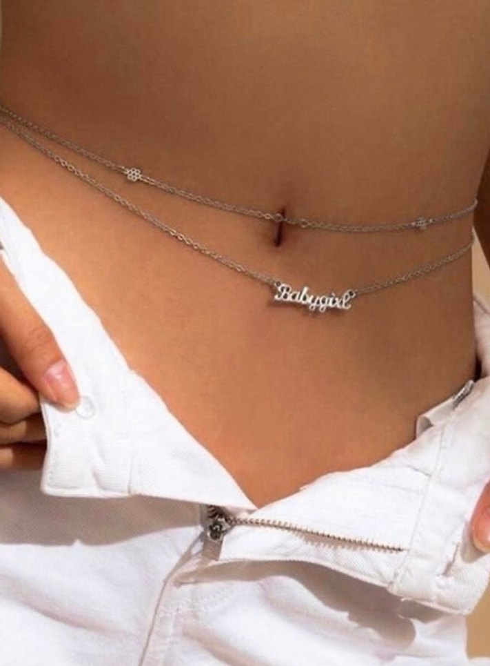 Zincir detaylı beyaz vücut zinciri, sokak stili ve günlük kullanım için uygun. Minimalist ve cesur tasarım. ⚡babygirl yazılı dün aynı görseldeki renk ve modeldedir.