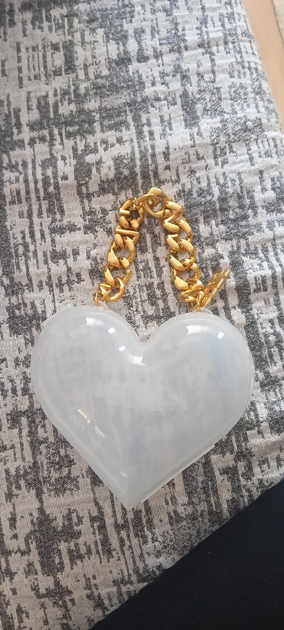 Zincir detaylı, beyaz kalp şeklinde kadın el zinciri. Tie-dye desenli, romantik akşamlar için şık ve avangart tarzda orijinal ürün beymen den alınmış.