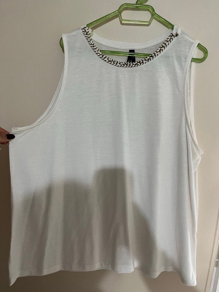 Zincir Detaylı Beyaz Kolsuz Tişört