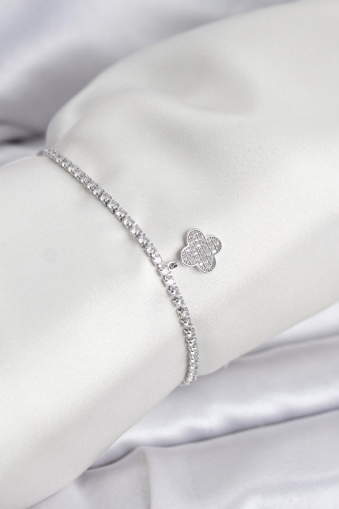 Bu beyaz minimalist bileklik, işlemeli yonca figürlü ince zincir detayıyla klasik zarafete uygun, çağdaş tarzda bir tasarımdır. 8243