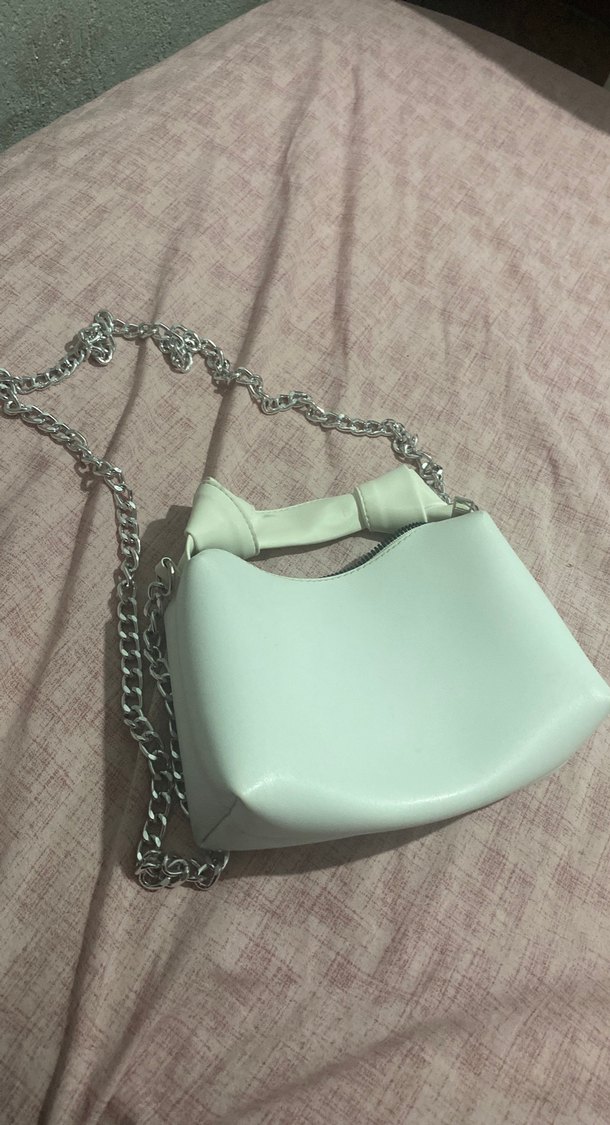 Zincir Detaylı beyaz Minimalist Kadın Çanta