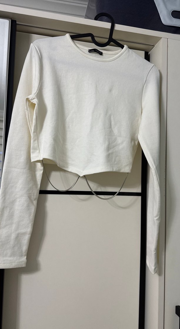 Zincir Detaylı Beyaz Uzun Kollu Bluz