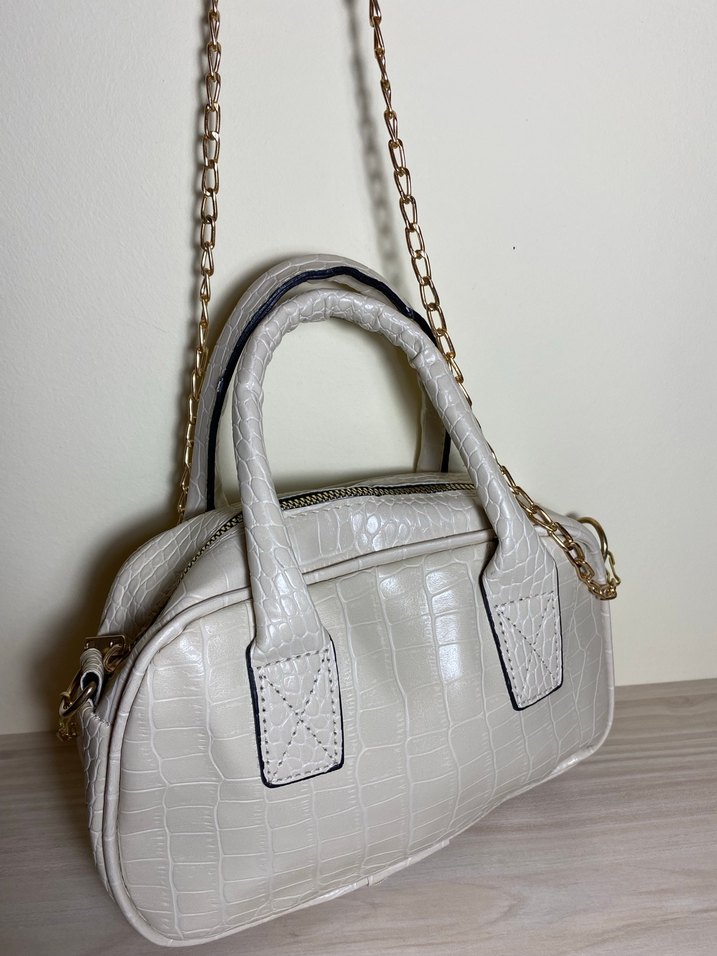 Zincir Detaylı Beyaz Yılan Derisi Desenli Çanta