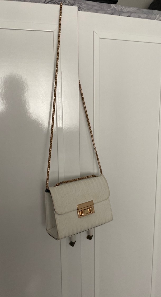 Zincir Detaylı Beyaz Yılan Derisi Desenli Deri Çanta