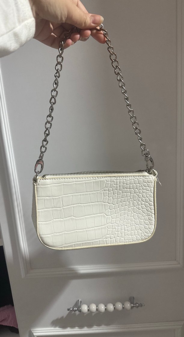 Beyaz yılan derisi desenli deri kadın çanta, zincir askıyla birlikte minimalist ve trend sokak stili için uygundur. Günlük kullanıma idealdir. İçinde küçük lekeler var yıkamada geçecektir