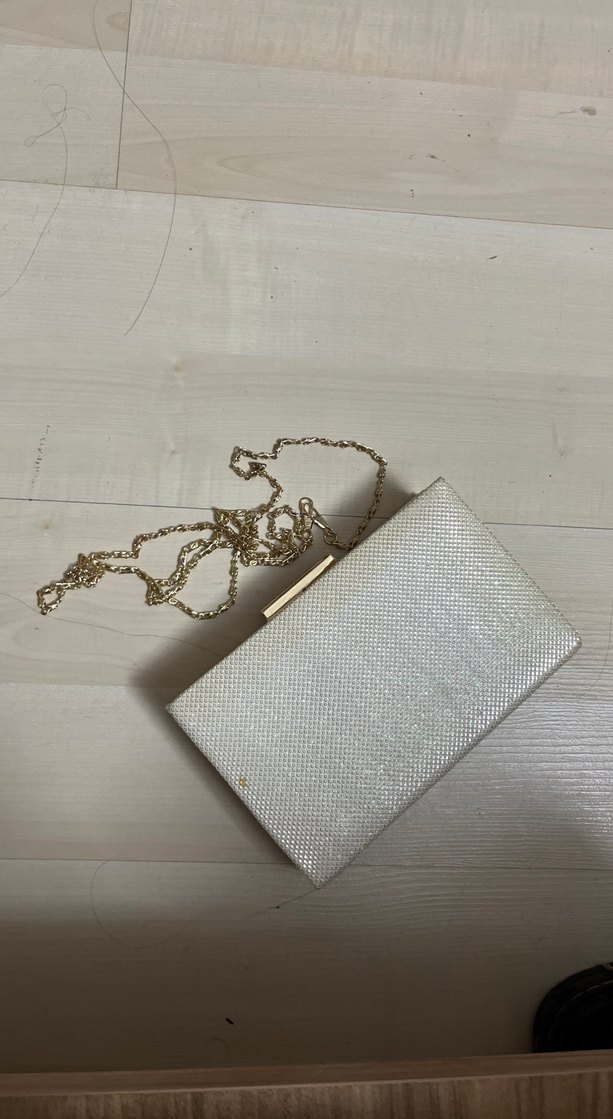 Sentetik kumaştan, yılan desenli ve zincir detaylı beyaz kadın portföy çanta. Düğün gibi özel günlere uygundur, modern klasik tarzda.
