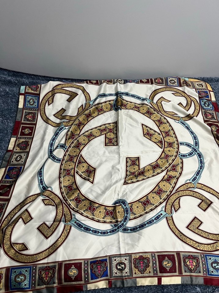 Zincir detaylı, koyu çok renkli tekstil kumaştan bohem tarzda kadın eşarp retro ve hippie görünüm için uygun.