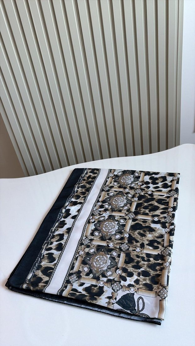Kadınlar için zincir detaylı, koyu kahverengi bohem desenli, yumuşak sentetik kumaştan yapılmış fular. Bohem ve retro tarzlara uygundur.