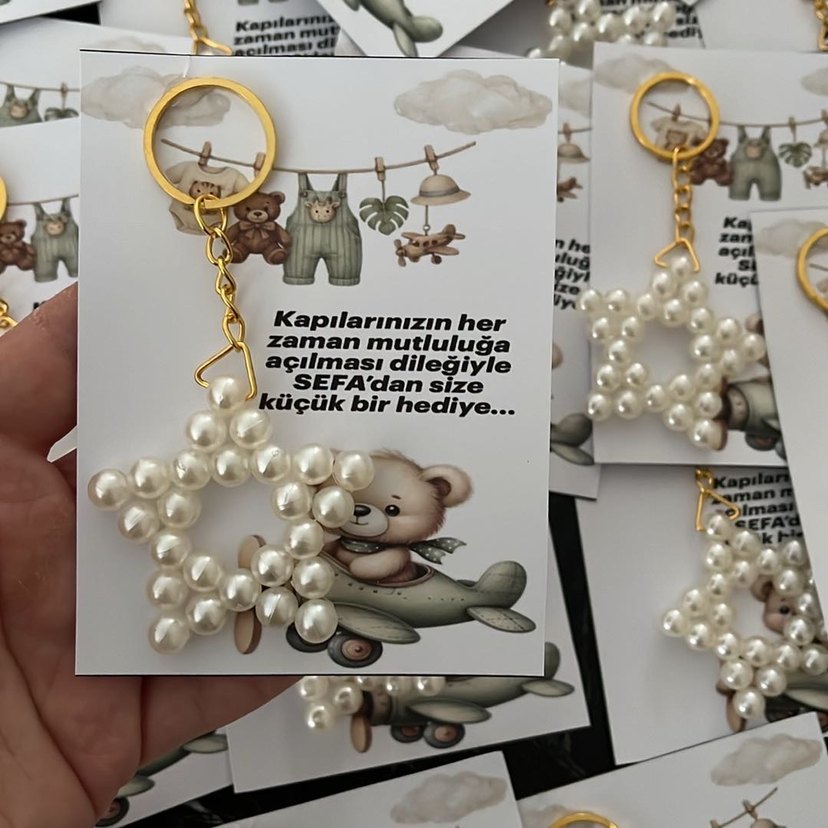 Altın zincir detaylı, gri ve inci süslemeli bohem tarzda kadın anahtarlığı. Kapı açma mutluluğu dileğiyle kart eşliğinde sunulur adet fiyatı 15₺ istediğiniz görsel tasarlanır istediğiniz sayıda ilan açılır