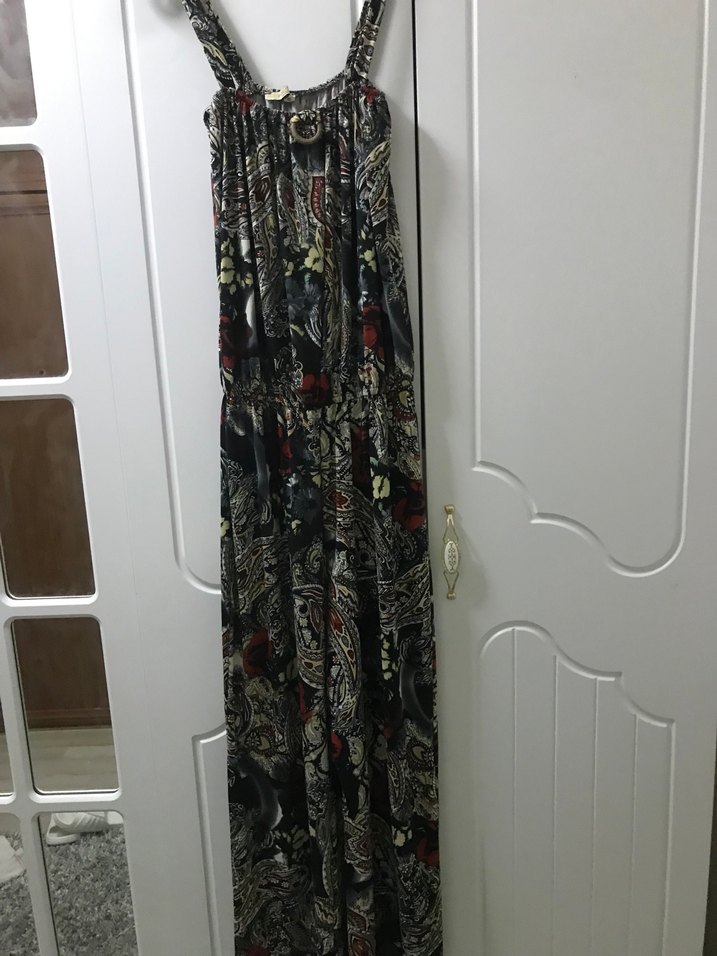 Zincir detaylı, askılı, straplez yaka bohem tarzda, desenli, uzun ve bol kesim tulumGünlük kullanıma uygundur.