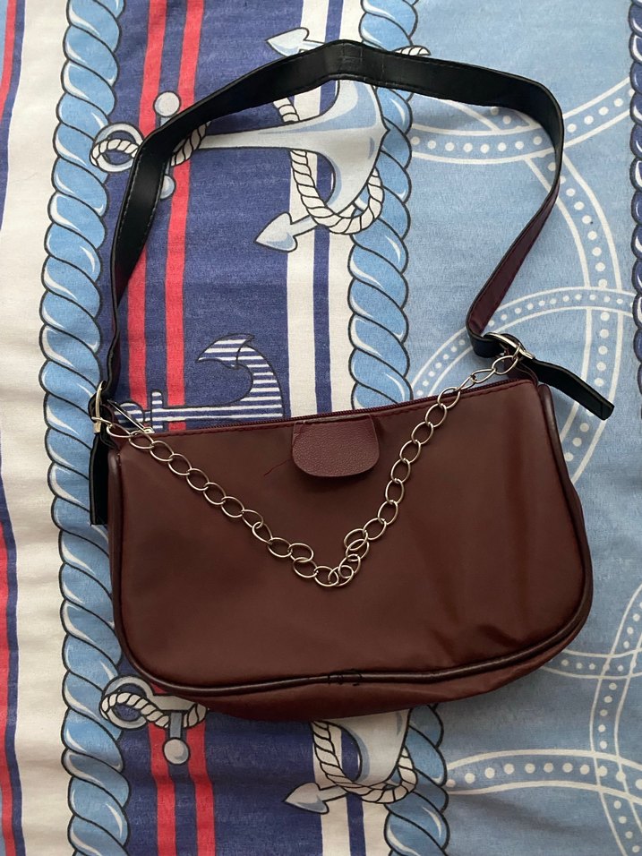 Bordo deri çanta, zincir detaylı ve omuz askılıdır. Paris esintili sokak stiline uygun, günlük kullanıma elverişlidir. Düz desensizdir.