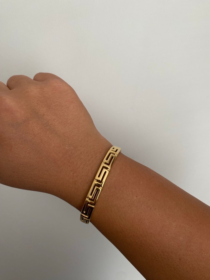 Parlak altın renkli, zincir detaylı ve minimalist tasarımlı kadın bileklik, günlük kullanıma uygun klasik şıklık sunar. ✨