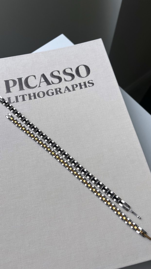 Zincir detaylı, baskılı desenli altın kadın bileklik. Günlük kullanıma uygun, çağdaş ve Parisli tarzını yansıtan bir tasarım. Trend belirleyenler için ideal.
