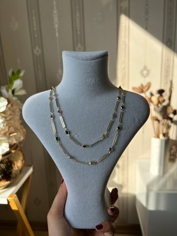Zincir Detaylı Çok Renkli Bohem Kadın Kolye