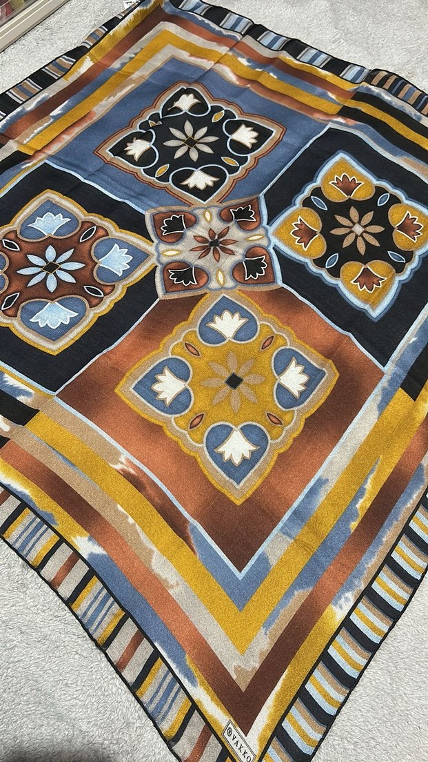 Kadınlar için çok renkli, zincir detaylı tekstil şal. Bohem stilinde, retro desenli ve koyu renk tonlarına sahip.
