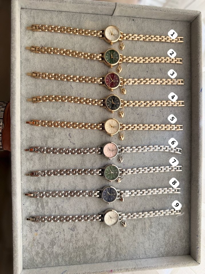Zincir detaylı, çok renkli ve gri tonlarında kadın saatleri. Bohem tarzda, Paris esintili, hippie ve retro görünüme uygun saatler.⌚