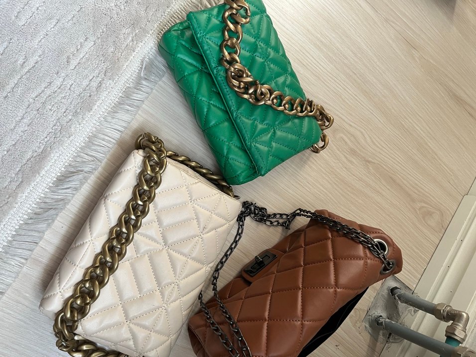 Deri, zincir detaylı ve nakışlı desenli kadın çanta. Yeşil, beyaz ve kahverengi renk seçenekleriyle bohem tarzda, günlük kullanıma uygun, Paris esintili çanta.
