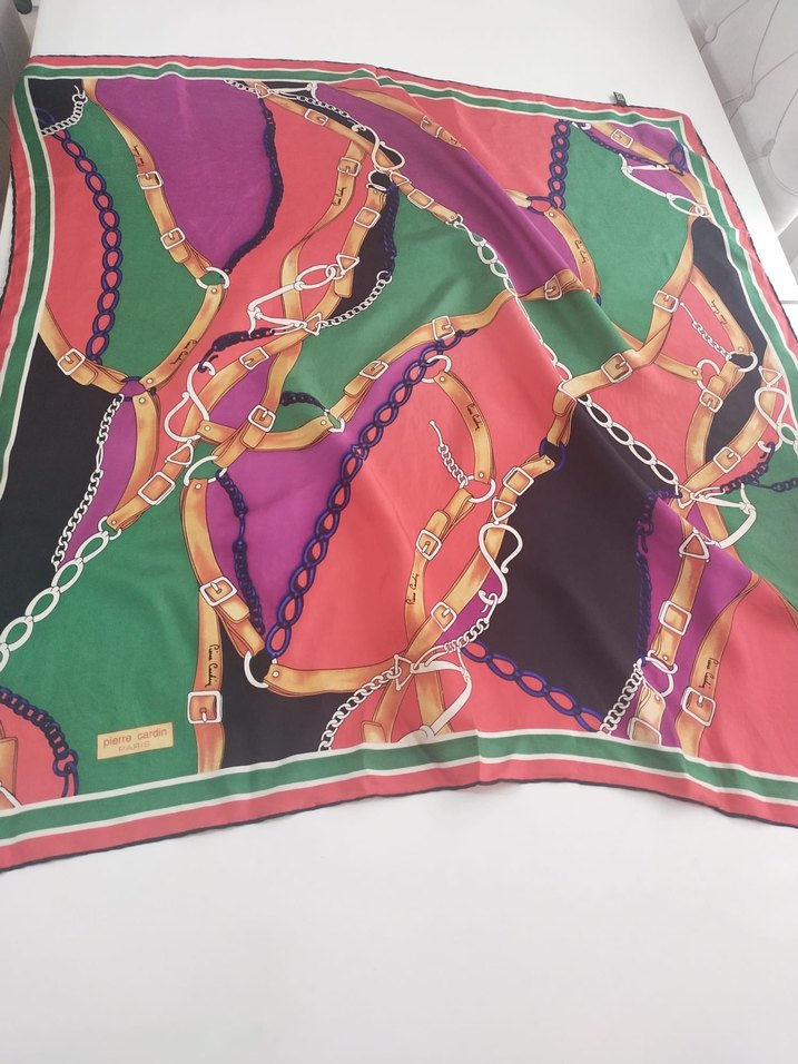 Kadınlar için ipeksi dokulu, zincir detaylı çok renkli fular. Bohem ve retro tarzını yansıtır.